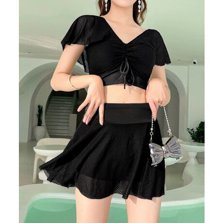 魅力的なレースアップトップスとミニスカートの水着2点セットが登場