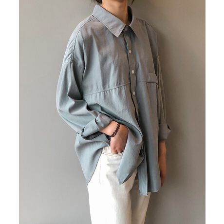 ゆるっとしたシルエットのカジュアルラウンドヘムシャツブラウス