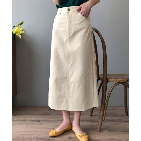 キレイめカジュアルにも、甘めスタイリングのスパイスにも使えるスリット入りデニムスカート