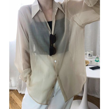 素材の透け感でレイヤードを楽しめる長袖シアーブラウス