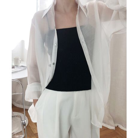 素材の透け感でレイヤードを楽しめる長袖シアーブラウス