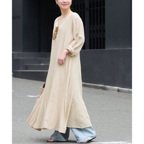 同シリーズのブラウスを持っていて、そちらも同様に外では腕を捲って着用していますが、シワになりづらく涼しさもあり首周りの開きもちょうど良く、程よくAラインならのがスッキリ見えて◎
