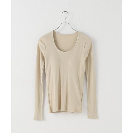 すっきりしたリブ素材を起用しコンパクトなシルエットで透けにくく一枚着にもおすすめ。