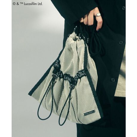『STAR WARS』らしいカラーコントラストにもこだわったオリジナルデザインバッグ。総メッシュに配色テープを合わせたフラットなスクエアフォルムが特徴です。メイン間口やポケットにはドロストコードをプラスし、キュッと絞ってコンパクトな巾着型に。さりげないロゴアクセントを効かせたポイント使いにも最適なアイテムです。※モデル着用画像は、光の当たり具合で色味が違って見える場合がございます。※お使いのモニター環境によって商品の色味が違って見える場合がございます。