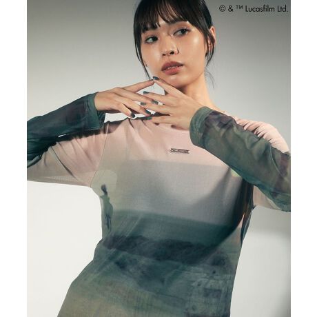 ノスタルジックなフォトグラフィックがプリントされたシアーTシャツ。程よくフィットするコンパクトなシルエットと、伸縮性のある素材感で着心地も抜群です。胸元のメタルロゴプリントがぱっと目を惹くアクセント。デニムやスラックスなどのパンツスタイルはもちろん、ミニ丈ボトムと合わせても今年らしく決まるおしゃれなアイテムです。透け感[あり]