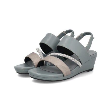 異素材をミックスしたコンビネーションで、エレガントに仕上げたウェッジサンダル。