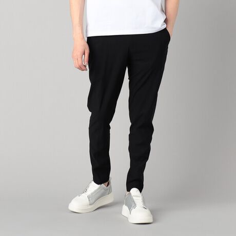 横から見るとパンツが脚に添って曲がっているシルエットです。