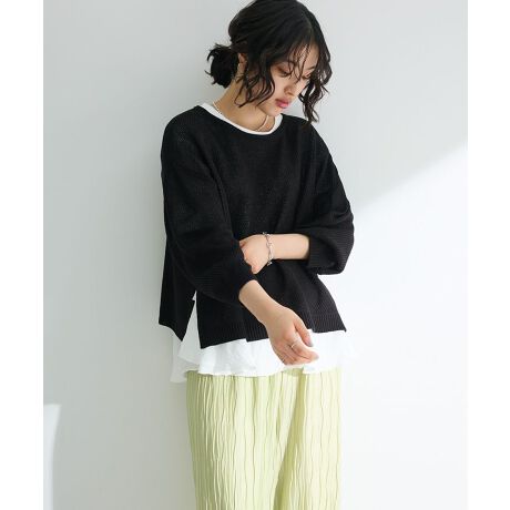 デイリー使いに最適な春のボートネックニットプルオーバー。かのこ編みのざっくりとした表情と、七分丈袖がスタイリングに爽やかな抜け感をプラスします。サイドには深めのスリットを入れてボトム合わせしやすいデザインに。程よい透け感を活かしたヘルシーなレイヤードスタイルも楽しめる今季おすすめのアイテムです。透け感[ややあり]