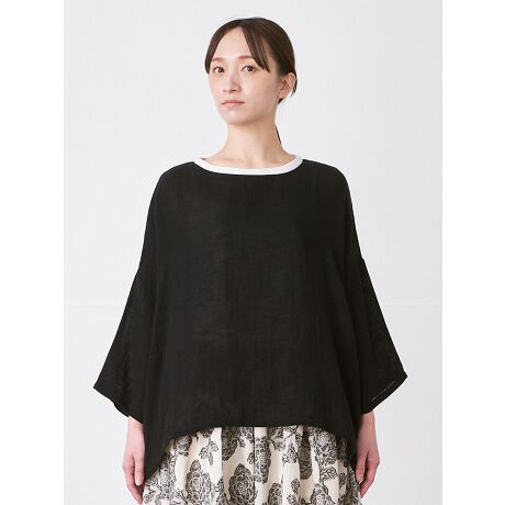 配色プルオーバーブラウス 綿Wガーゼ【M〜3L】 【大きいサイズ】