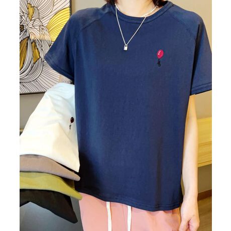 胸元に可愛らしいイラストがワンポイントのカジュアルTシャツ。シンプルながらも個性的なデザインが魅力です。リラックス感のあるシルエットで、普段使いにぴったりな一枚です。