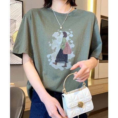 シンプルなデザインの中に、女性のイラストがアクセントとなるカジュアルTシャツ。普段使いにぴったりなリラックス感のあるシルエットが特徴です。フロントに施されたイラストがシンプルな中にも個性を感じさせます。