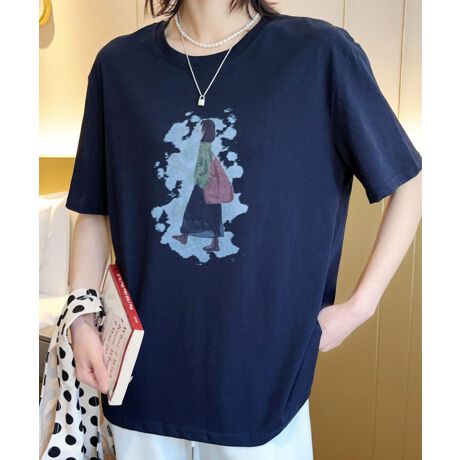 シンプルなデザインの中に、女性のイラストがアクセントとなるカジュアルTシャツ。普段使いにぴったりなリラックス感のあるシルエットが特徴です。フロントに施されたイラストがシンプルな中にも個性を感じさせます。