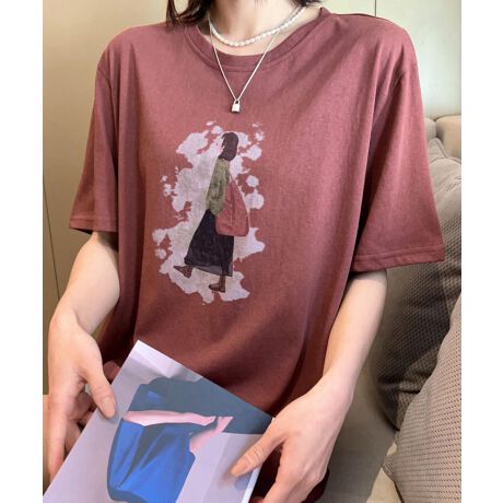 シンプルなデザインの中に、女性のイラストがアクセントとなるカジュアルTシャツ。普段使いにぴったりなリラックス感のあるシルエットが特徴です。フロントに施されたイラストがシンプルな中にも個性を感じさせます。