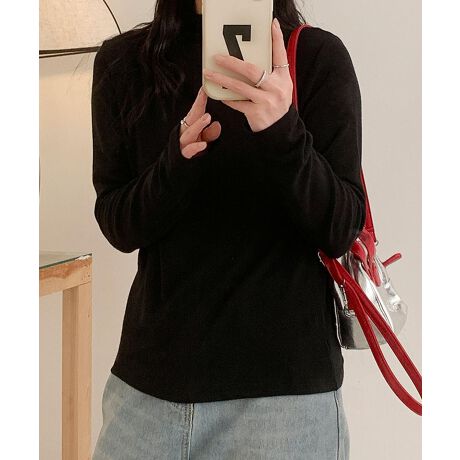 ハイネックリブニット