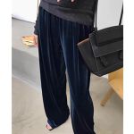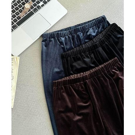 上品な光沢感を持つベルベット素材のワイドパンツ。ゆったりとしたシルエットが脚のラインを美しく見せるだけでなく、リラックスした履き心地。ウエスト部分はゴム仕様で、簡単に着脱らくらく。カジュアルからエレガントなシーンまで幅広く活躍する一着です。