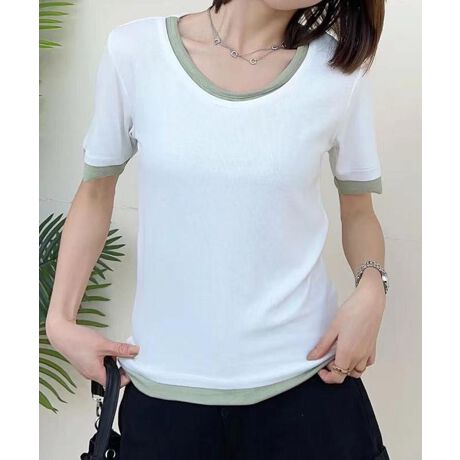 シンプルながらもエッジの効いた配色デザインのTシャツです。カラフルなネックラインと袖口のラインが特徴で、シンプルな中にアクセントを加えています。ゆったりとしたシルエットで、リラックス感のある着心地。普段使いにぴったりのアイテムでさまざまなコーディネートに使用できます。