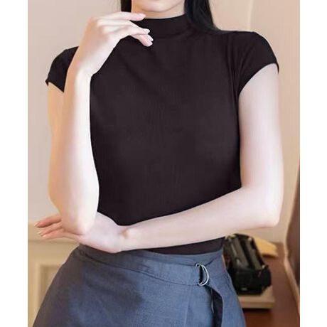 シンプルでスタイリッシュなデザインのハイネックTシャツです。伸縮性のある素材で、体にぴったりとフィットし、美しいシルエットを作り出します。肩のラインがスッキリと見えるデザインで、デイリーにもフォーマルにも使える万能アイテムです。
