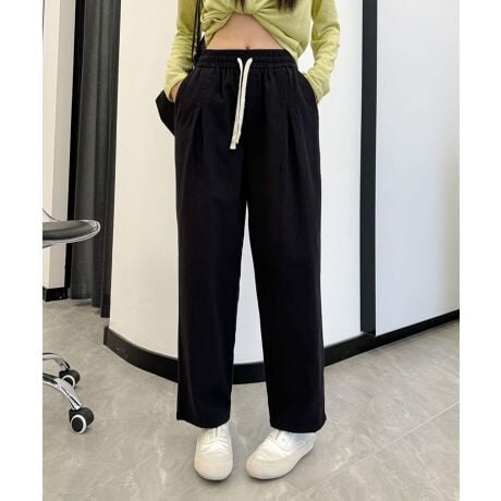 定番カジュアルパンツです。ウエスト部分はゴム仕様で、着脱が楽なのも嬉しいポイントです。ゆるっとしたサイズのニットとパンプスを合わせるとキレイめカジュアルな印象に。