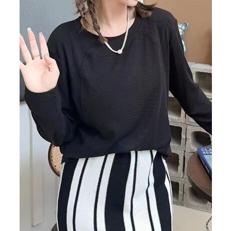 クルーネックデザイン長袖トップス