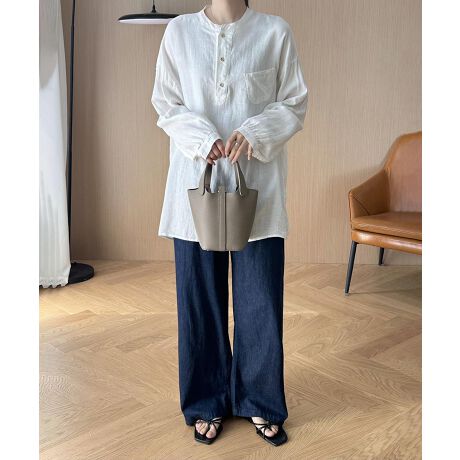 清涼感があり、通気性に優れたシャツブラウス。韓国風の清楚で可愛らしいデザイン。オーバーサイズでゆったりしているので動きやすく柔らかなリヨセル混で着心地の良い一枚。シンプルでありながらも、女性の魅力を引き立てるブラウスです。