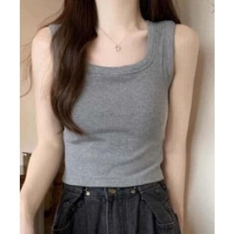 シンプルなデザインのタンクトップ。伸縮性があり、フィット感抜群で体にぴったりと馴染む、シンプルでありながらスタイリッシュなアイテムです。カジュアルにもオフィススタイルにもぴったりなデイリーユースに最適なアイテム。