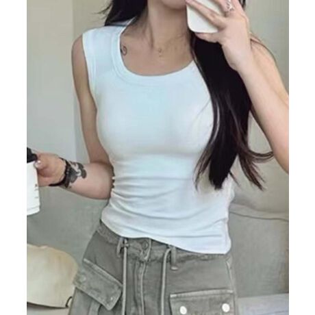 シンプルなデザインのタンクトップ。伸縮性があり、フィット感抜群で体にぴったりと馴染む、シンプルでありながらスタイリッシュなアイテムです。カジュアルにもオフィススタイルにもぴったりなデイリーユースに最適なアイテム。