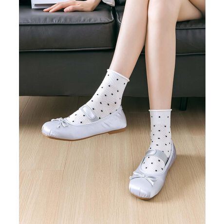 コントラストの柄が楽しめるソックス。花やドット柄が足元を華やかにしてくれます。