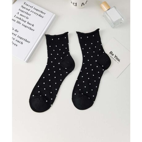 コントラストの柄が楽しめるソックス。花やドット柄が足元を華やかにしてくれます。