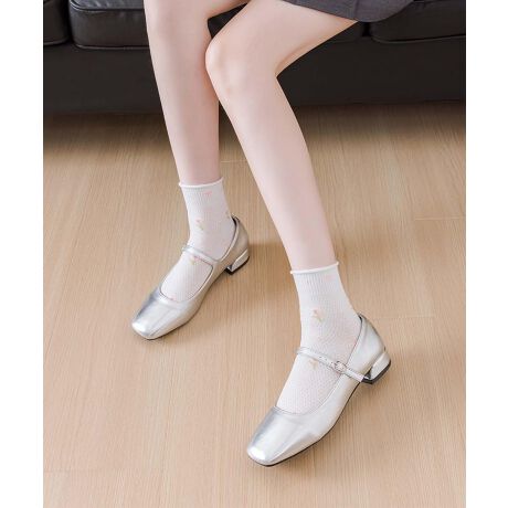 コントラストの柄が楽しめるソックス。花やドット柄が足元を華やかにしてくれます。