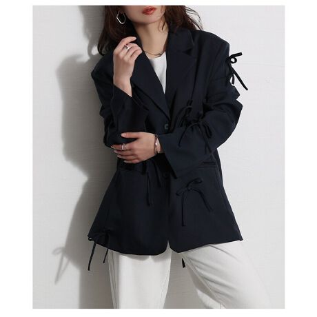 マルイウェブチャネル   /   サワアラモード   /   アウター・ジャケット・コート   /   テーラードジャケット   /   【アウター】 ジャケット リボン テーラード 無地 立体 長袖 レイヤード シングル ネイビー 紺