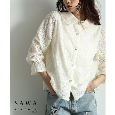 甘くなり過ぎない柔らかな大人の刺繍レースシャツブラウス。うっとり見惚れるほどに美しい刺繍レースに包まれるデザイン。程よい透け感が大人のヘルシーな印象にしてくれます。キャンディースリーブのお袖が可愛さを甘さをプラス。ボタンがパールになっており品のある艶感を与えてくれます。