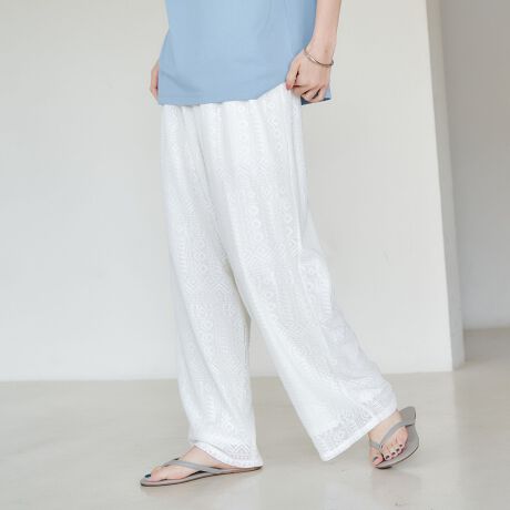 立体的な幾何学模様が印象的な、軽やかで涼しげなサマーパンツ。