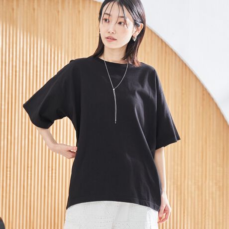 後ろ裾にタックを施すことで、自然な丸みを帯びたコクーンシルエットに仕上げたTシャツ。