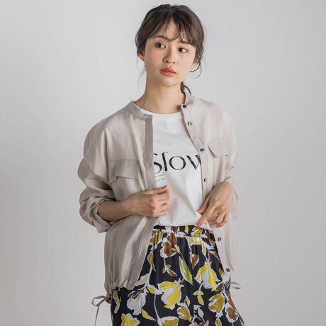 バンドカラーで1枚着としてはもちろん、羽織りとしても着回せる1枚です。