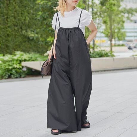 サロペットは幅広めのデザインで、ゆったりとしたシルエットが特徴。