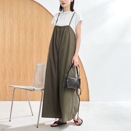 サロペットは幅広めのデザインで、ゆったりとしたシルエットが特徴。