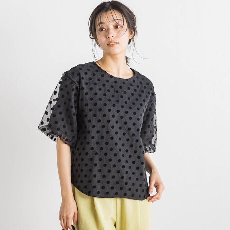 フロッキーのドットプリントが大人可愛いシアーブラウス。