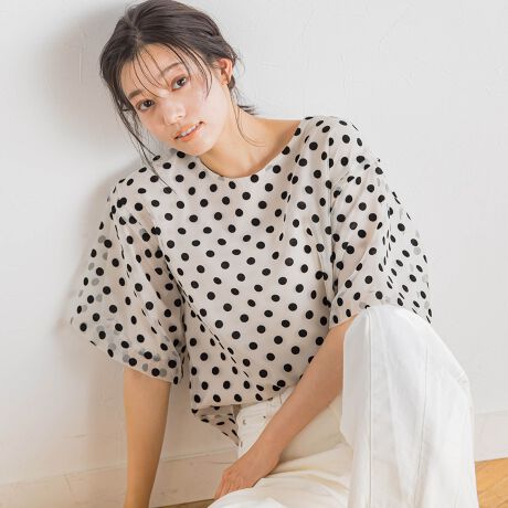 フロッキーのドットプリントが大人可愛いシアーブラウス。