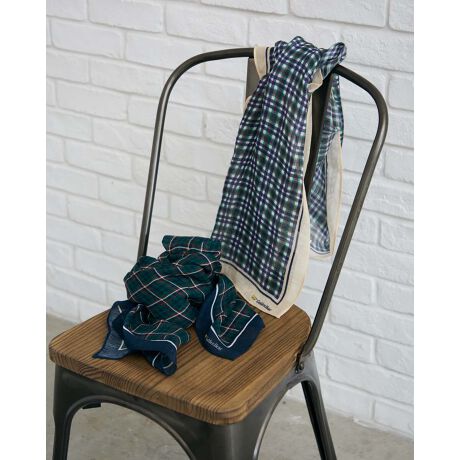 アイコンのGBチェックをプリントした麻混ストールです。コーディネートのアクセントに使える一枚です。