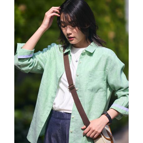 上質なフレンチリネンで仕立てた、イージーケアのシャツ。リネンならではの清涼感とナチュラルな風合いが魅力です。シワになりにくく、アイロンなしでも自然なニュアンスを楽しめるので、日常使いはもちろん旅先でも重宝します。ベーシックなサイズ感はトレンドに左右されず長く愛用できる一着。羽織りとしても、一枚着としても、様々な着こなしに対応してくれるので、スタイリングの強い味方に!メンズと同素材で展開しているので、リンクコーディネートも楽しめます。優しいナチュラルな色合いもおすすめしたいポイントです。