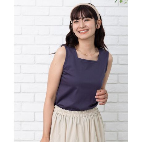 オーガニックコットン100%のシルケットスムースを使用したスクエアネックのタンクトップです。透けにくく綺麗めな素材なので様々な用途で活躍するアイテムです。
