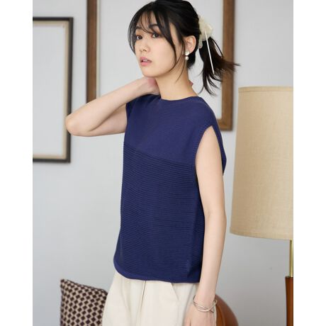 WHOLEGARMENTで編み上げたニットベストです。ガーターの編みに強弱をつけ表情ある1枚に仕上げています。レイヤードスタイルはもちろん、1枚でノースリーブとしての着用もおすすめです。