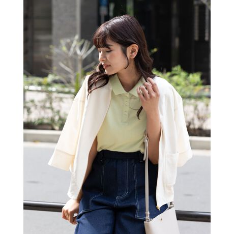 ほのかに弾力のある生地に規則正しく並んだ小さな丸型のパンチングが印象的なZIPの羽織りアイテム。細かく穴が空いていますが肌感がわかるほど透けない為シアー感が苦手なお客様にもお薦め。小さめに設定したネックラインやダレ感の無いボディは清潔感もあるのでオン・オフ両軸でお召しいただけます。メタルZIPの輝きやパッチポケットなどチャーミングなディティールでコーデのポイントになる1着。