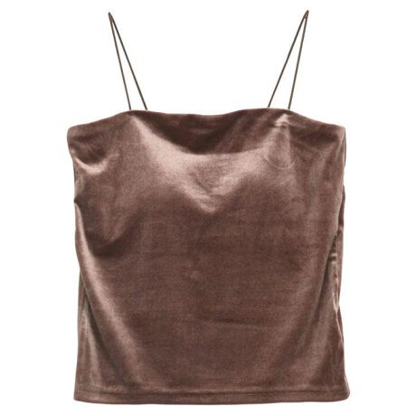 細い肩紐が可愛いです!ベロアの茶色、ロング丈ですが、長いというか普通の丈でした。良かったです!