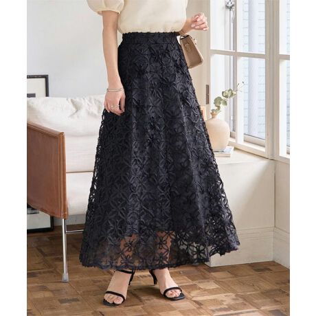 立体的なフラワーデザインとシアーの透け感がコーデに奥行きをもたらし、ふんわりとした軽やかな印象で着用いただけます。