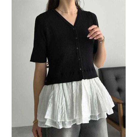 スタイリングを格上げしてくれるレイヤード風カーディガン。