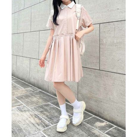 人気のドロストリボンシャツワンピースに新色pink beigeが登場!