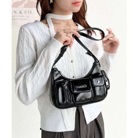 【mily bilet】コンパクトなのに収納力抜群!エナメルレザーデザインポケットハンドバッグ