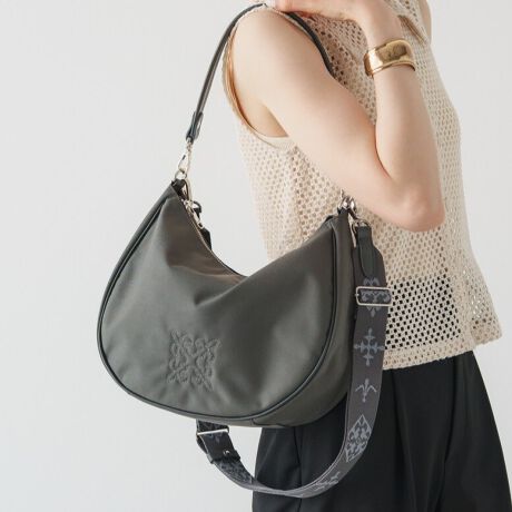 スタイリングに合わせてワンショルダーと斜めがけを使い分けていただけます。