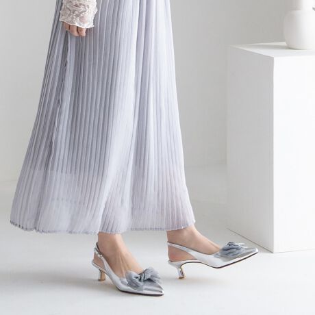 大きなオーガンジーリボンが目を引くバックバンドパンプス。